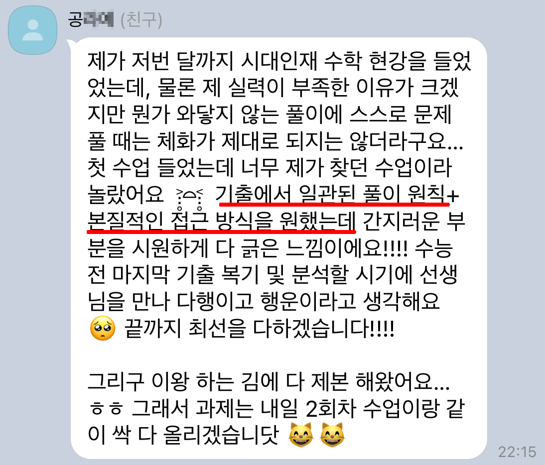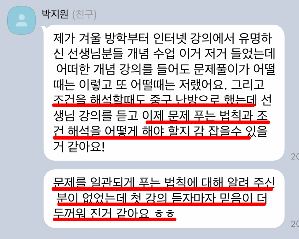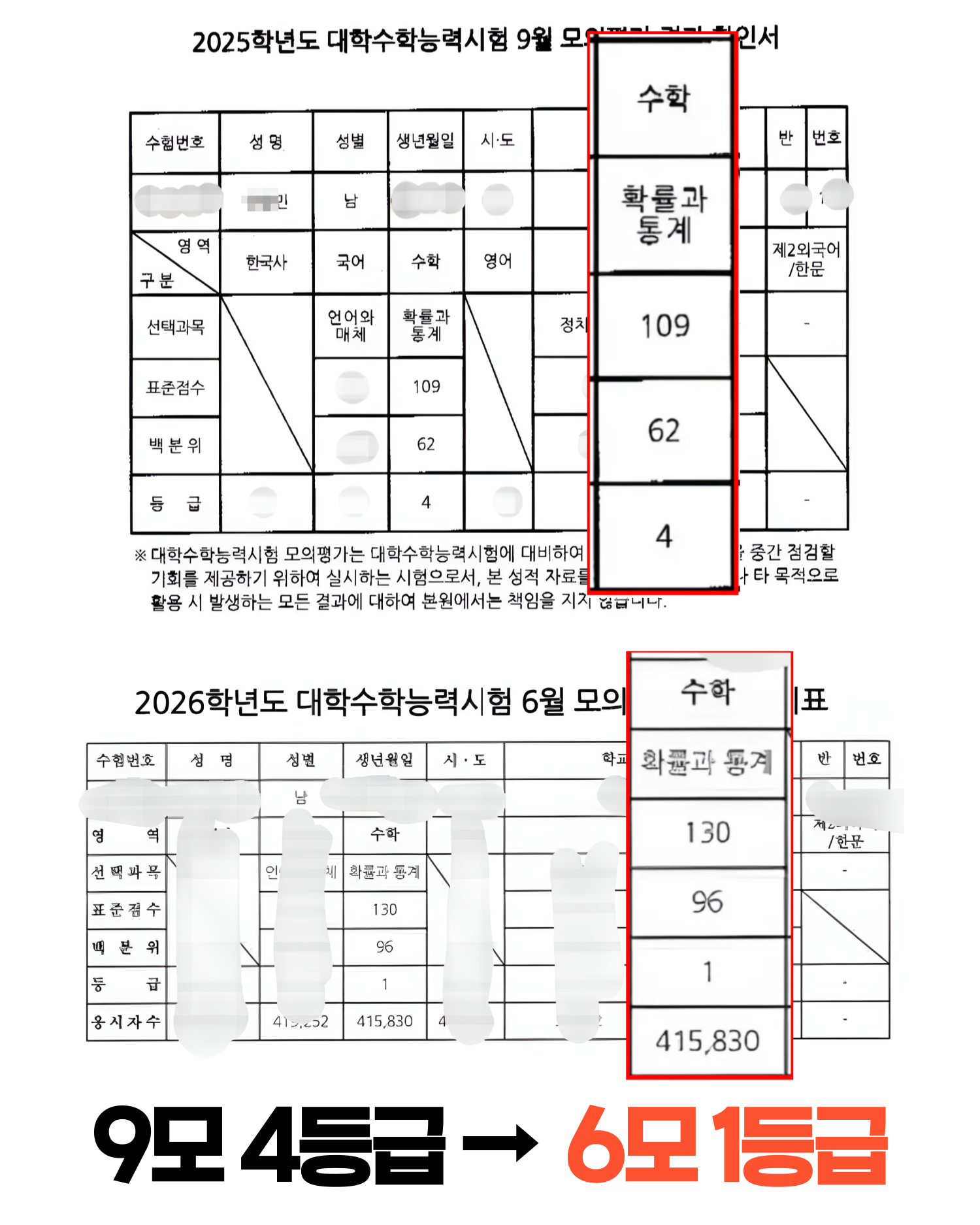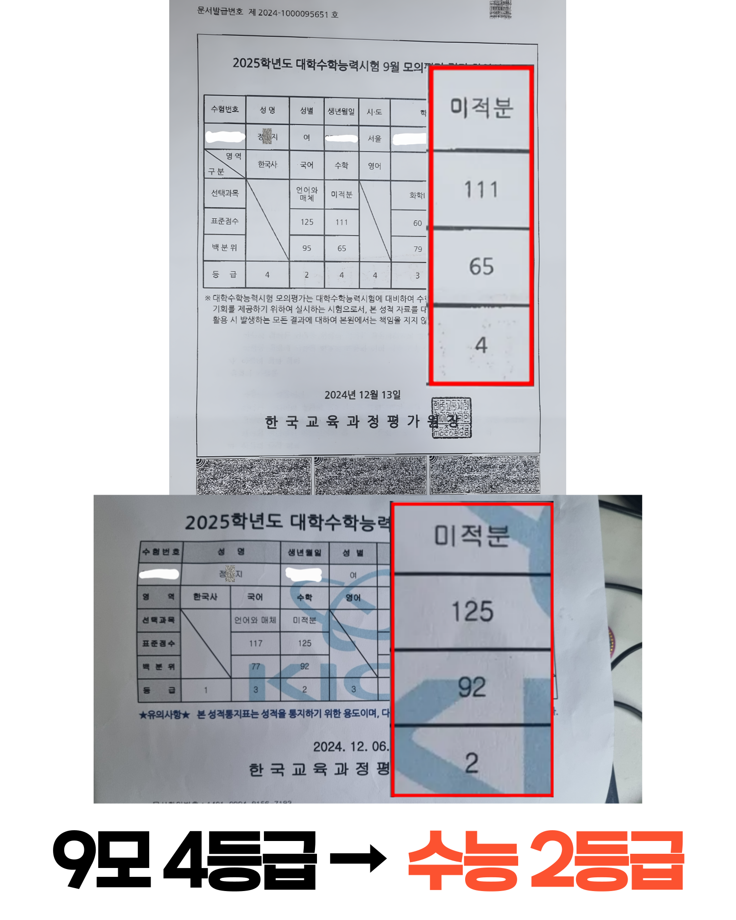 이제는 3~5등급의 잘못된 습관을 이해하는 강사에게 맡기세요. 삼수시절 일관된 원칙을 적용하고, 추가로 100분을 복기하는 실모공부법으로 4등급에서 1등급까지 만들었습니다.