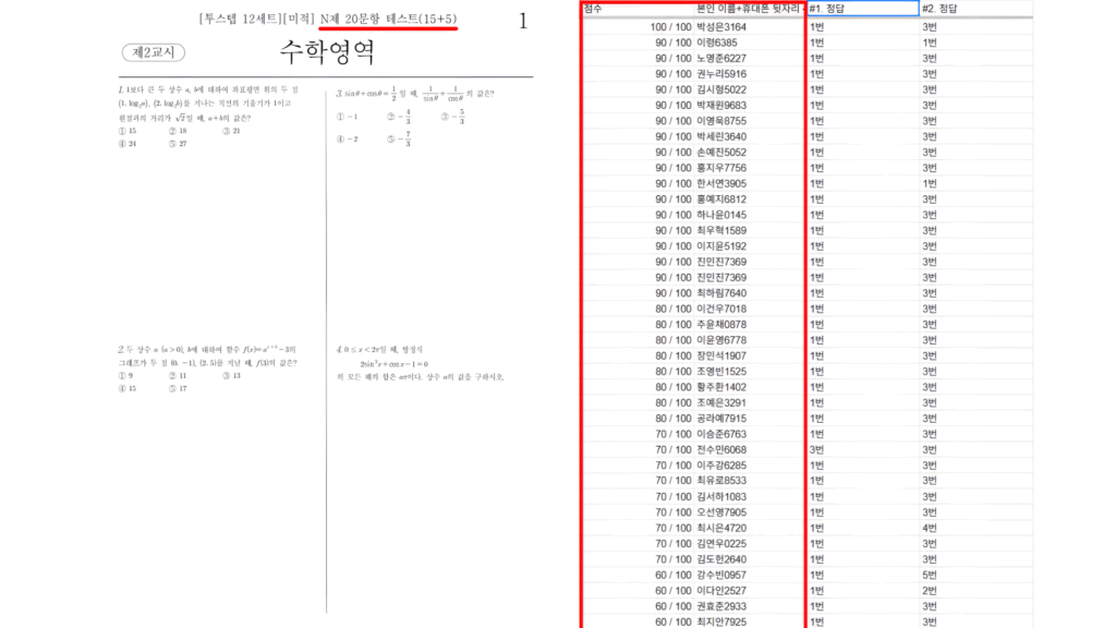 수능 날 시험 볼 떄와 똑같이 만들어 드립니다.