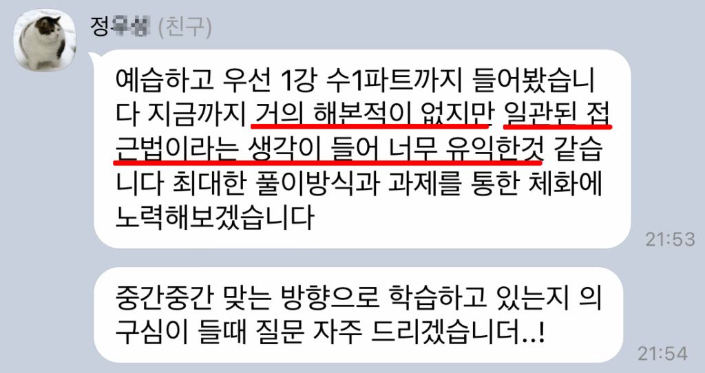 텍스트로 이해하기 힘든 내용을, 제 목소리가 담긴 영상으로 답변하기 때문에 이해하기 수월합니다.