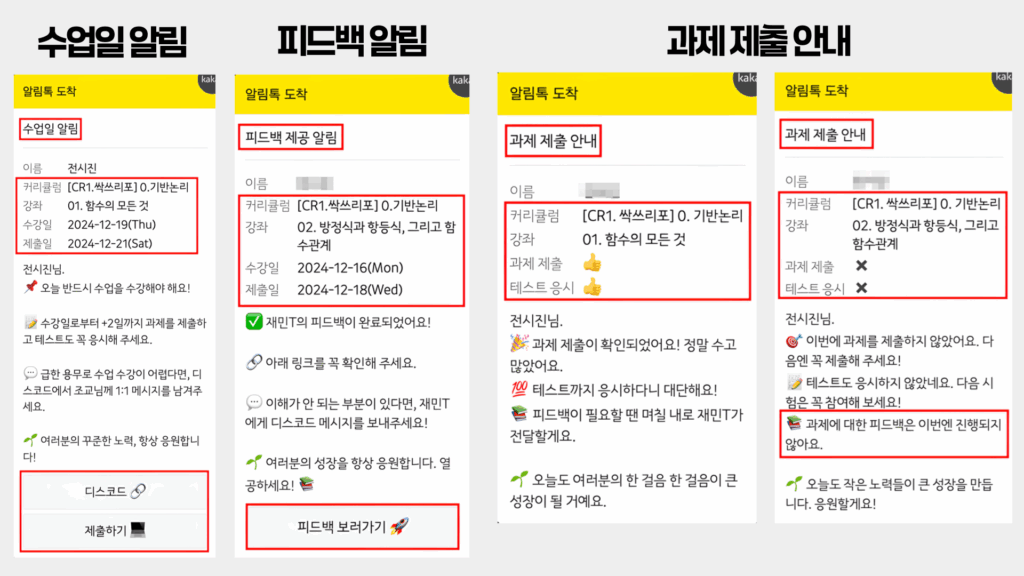 수업 듣는 날에, 과제를 제출해야 하는 날을 놓치지 않도록 알려드립니다.
